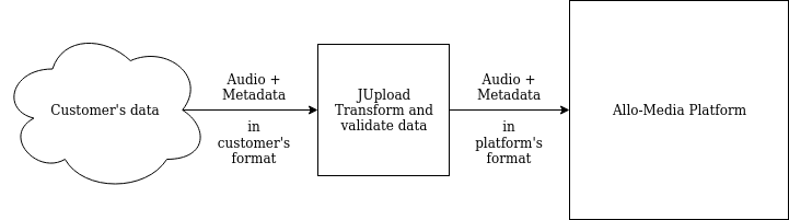 The JUpload app is coupled with an SFTP server on which you upload audio files and metadata. Once upload is completed, JUpload take care of all this data in order to send audio to transcription.